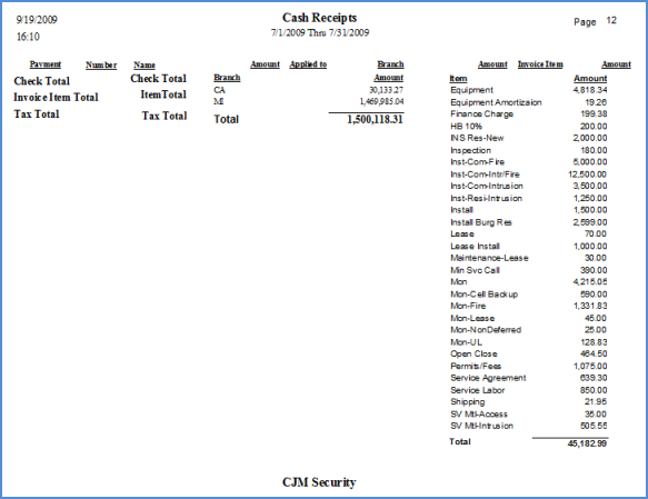 Sample Cash Receipts Report