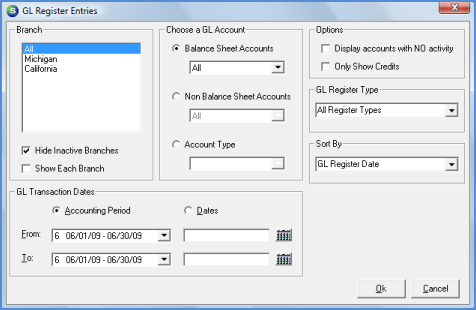 · Non-Balance Sheet Accounts - If this option is selected, the User may select All or a single Non-Balance Sheet account number.