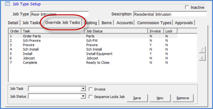 This setup form will only be displayed if the Allow Override Task List option was selected on the Job Type Detail form. This task list will be an alternate list of task to be used when creating a job with this job type. Follow the setup instructions for Job Tasks.