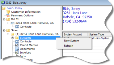 New System – Selecting this option will open a blank New System data entry form. Once information is entered and saved, a new System will appear on the tree for the Customer Site.