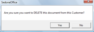 2. The User will be presented with a confirmation message for the document deletion. Make certain the correct document was highlighted before pressing the Yes button on the confirmation message box. This is a permanent deletion of the Document from the Customer Explorer.