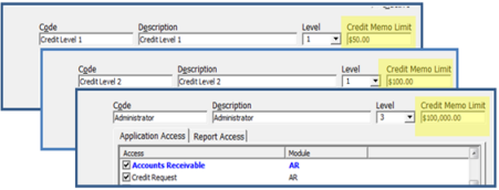For each User Group you may set a Credit Memo Limit amount. A User assigned to the group with a Credit Memo Limit amount will only be able to approve a Credit Request up to a total amount of the limit amount assigned to their User Group. You may have Users that you want to grant the permission to create Credit Requests, but not be able to sign-off on any amount requested. For these types of Users, their Credit Memo Limit would be set to zero.