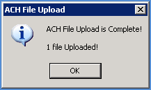 2. Upload the Payment Batch - Press the Upload button located at the lower left of the EFT Processing form. This will transmit the transactions to the ACH Direct secure FTP site. A message will be displayed confirming you are ready to submit the transactions for processing; press the Yes button to confirm and continue the process.