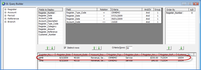 General Ledger GL Query Builder CQB Design Elements Report Query Results