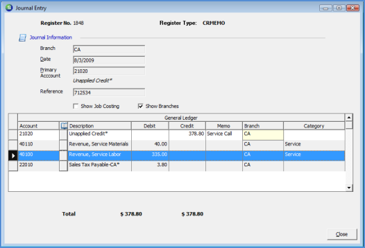Double-clicking on any row in the Query Results will open the entire Journal Entry to view both the debits and credits for the transaction.