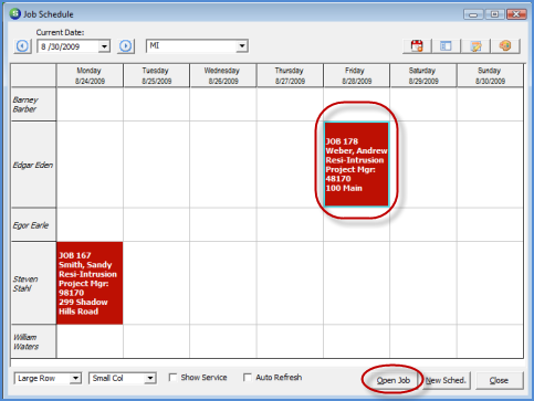 clicking on a Job Schedule in the Grid area of the Job Schedule