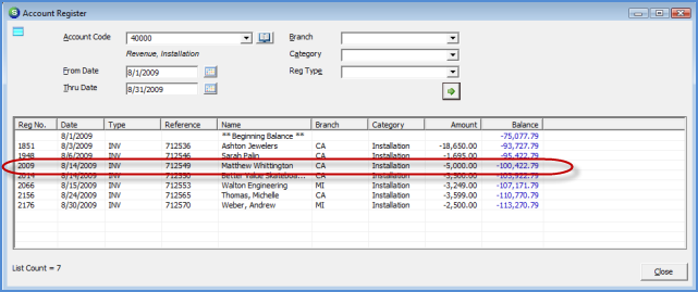 General Ledger Account Register