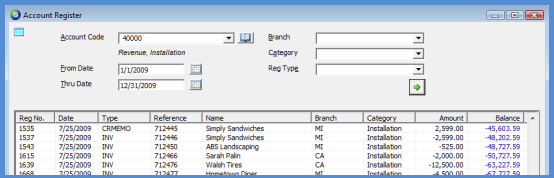 Balance - This is a running account balance for the account. If a date range is specified in the header section, the last row displayed in the list will be the ending balance in the selected account on the last date in the date range.